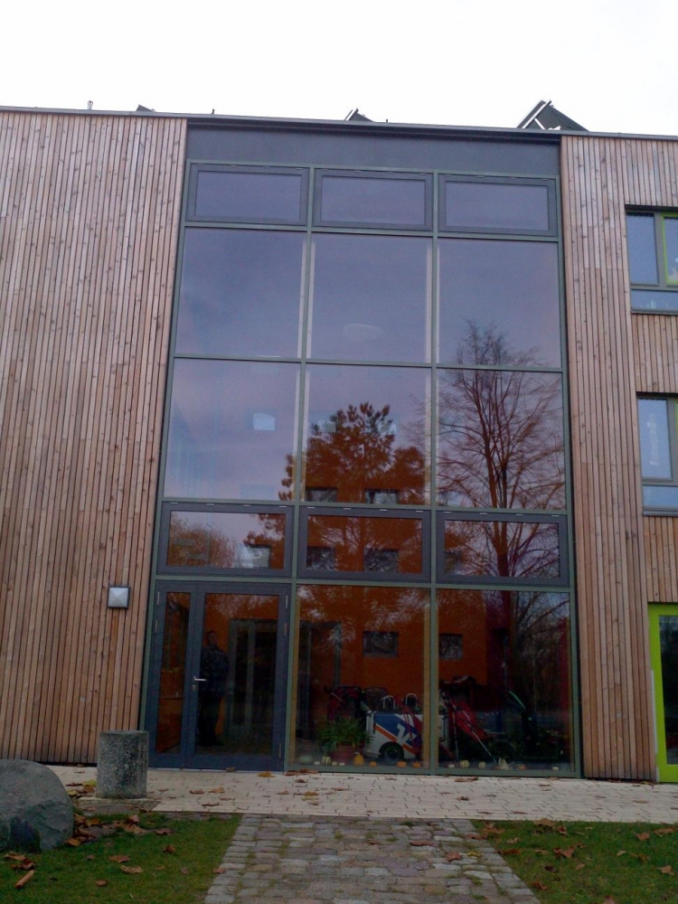 Fertigung, Lieferung und Montage von Holz-Pfosten-Riegel-Fassaden mit Aluminiumeinsatzelementen